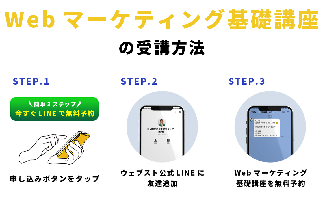 大丈夫です。まずは気軽に、初回限定Webマーケティング講座をご予約下さい。