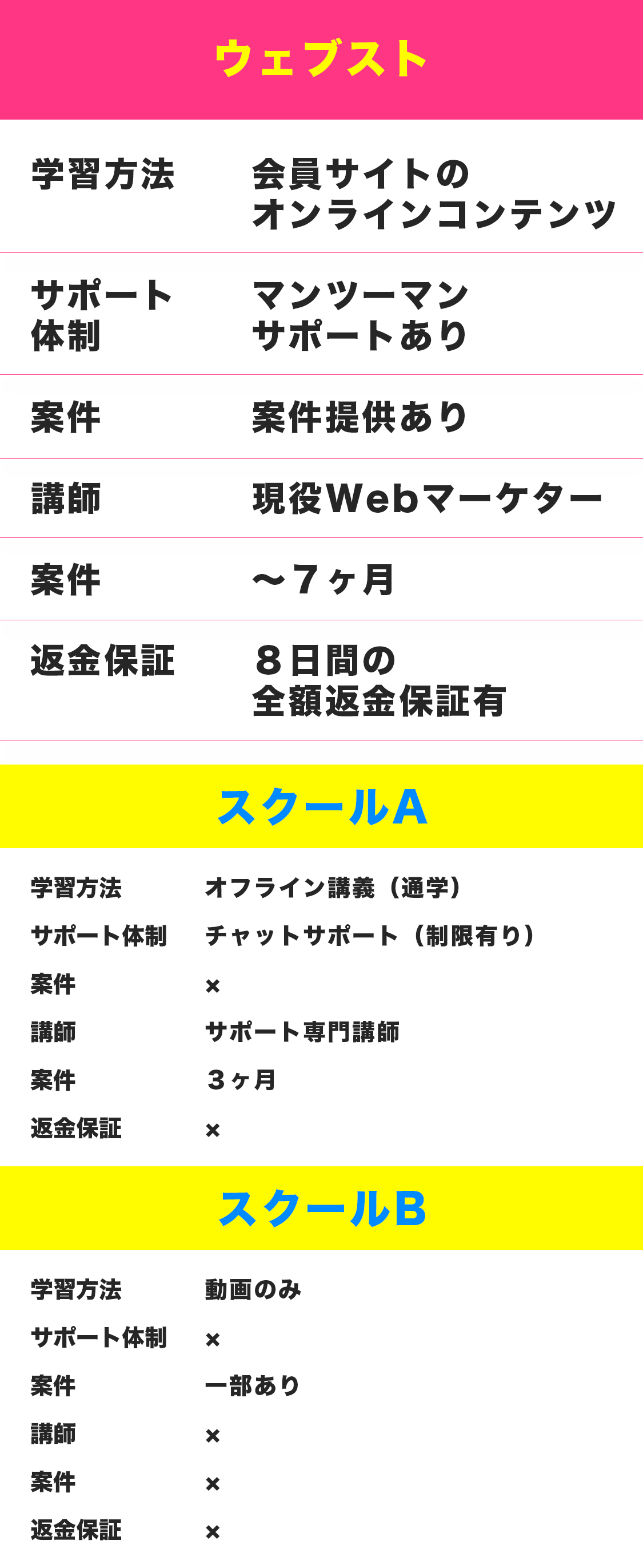 多くのWebマーケティングスクールで実践ができないという課題を解決する為に、ウェブストでは本物の広告案件で実務経験を積めます。